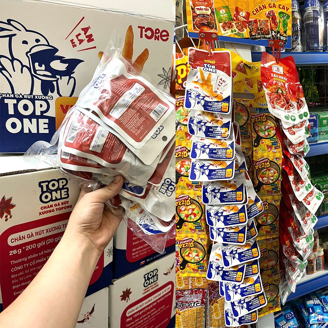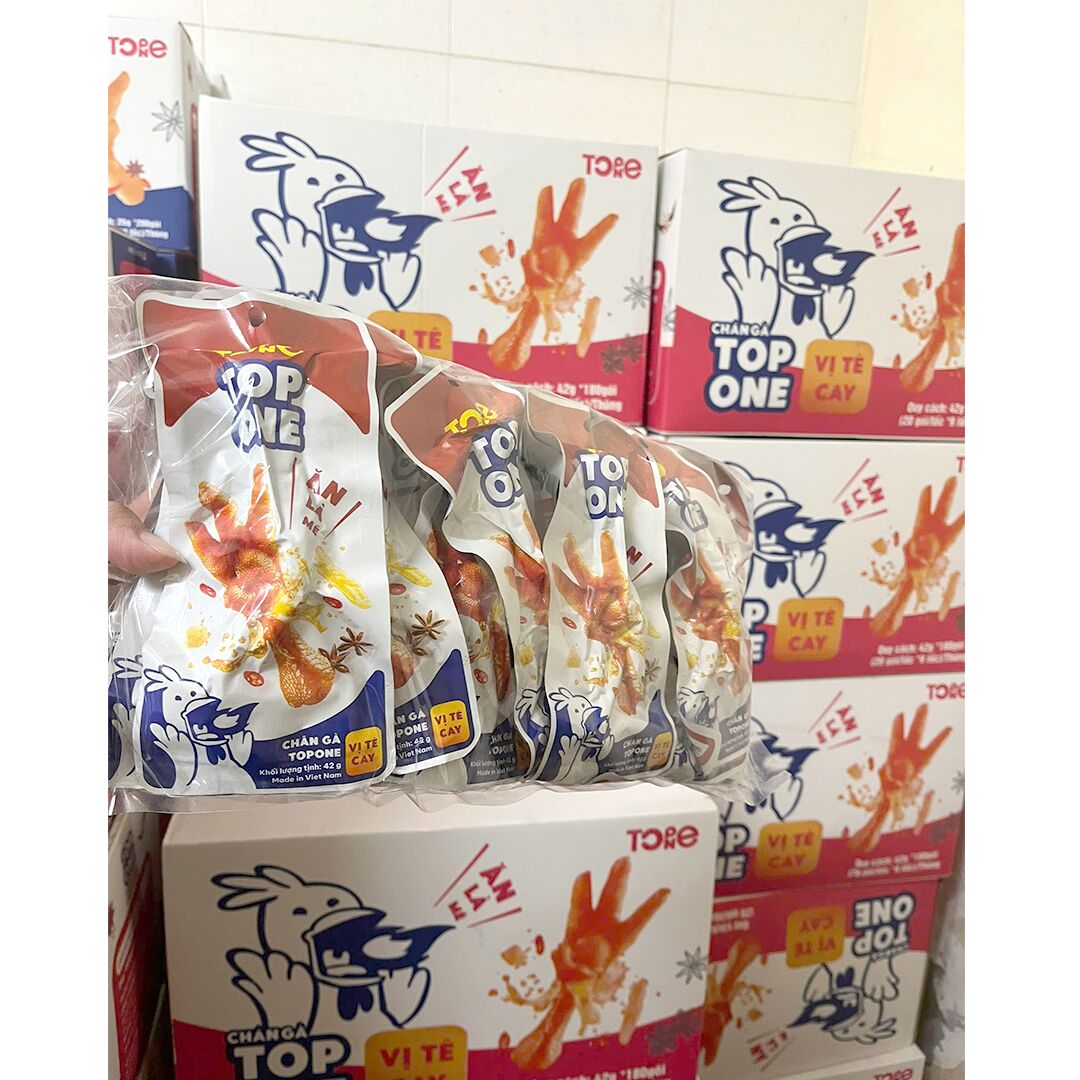 Chân gà Topone đóng gói sạch sẽ, bao bì đẹp, nhìn là muốn thử ngay, hàng công ty Topone chất lượng.